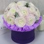 17 белых ранункулюсов в шляпной коробке в Курганинске