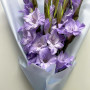 На фото букет из 9 лиловых гладиолусов. В составе: гладиолус 9 шт, дизайнерская упаковка 1 шт, . Все цветы свежие и ароматные, букет красиво оформлен и отлично подходит для подарка. Доступна доставка цветов или самовывоз.
