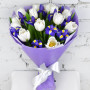 Букет из синих ирисов и белых тюльпанов в Курганинске