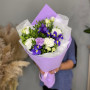 Букет из синих ириcов и белой кустовой розы