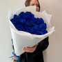 На фото букет из 15 синих роз. В составе: роза (синяя) 15 шт, дизайнерская упаковка 1 шт, атласная лента 1 шт, . Все цветы свежие и ароматные, букет красиво оформлен и отлично подходит для подарка. Доступна доставка цветов или самовывоз.