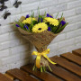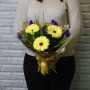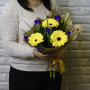 Букет из желтых гербер с синими ирисами в Курганинске