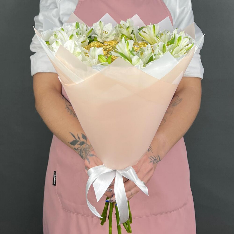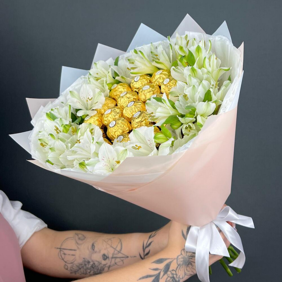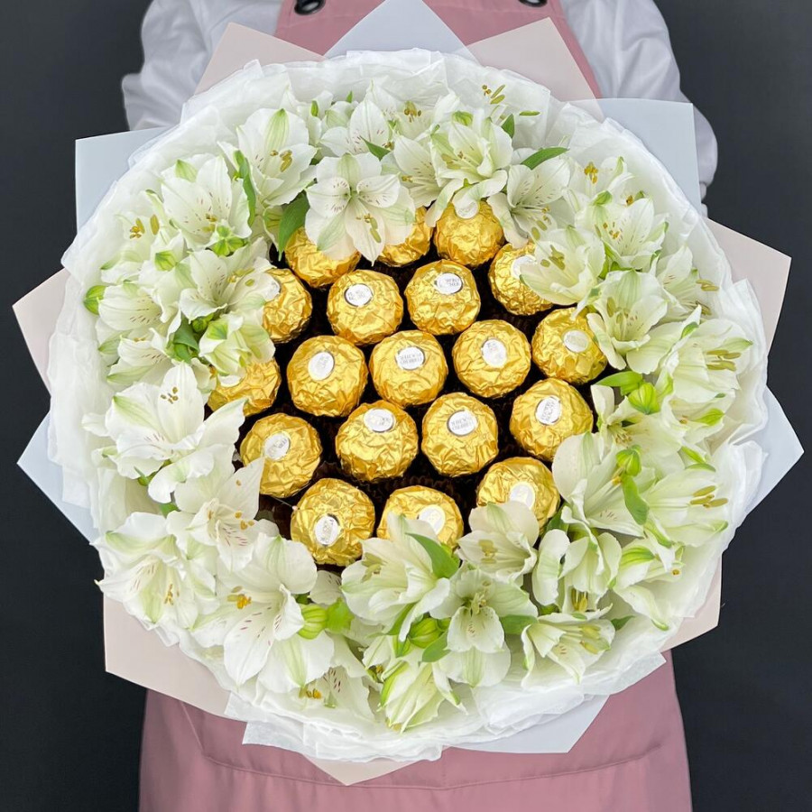 Букет из конфет Ferrero Rocher и и альстромерии в Курганинске