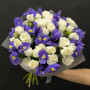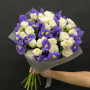 Букет из синих ириcов и белой кустовой розы в Курганинске